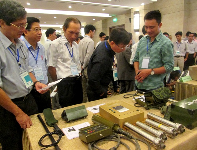Đại biểu thăm quan sản phẩm của Công ty ứng dụng và phát triển công nghệ (NEAD), Cục năng lượng nguyên tử, Viện hóa học - Môi trường quân sự, Trung tâm ứng dựng kỹ thuật hạt nhân trong công nghiệp...