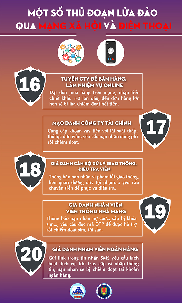 Cảnh báo 20 thủ đoạn lừa đảo qua mạng xã hội và điện thoại, mọi người nhận biết để tránh bị lừa đảo.