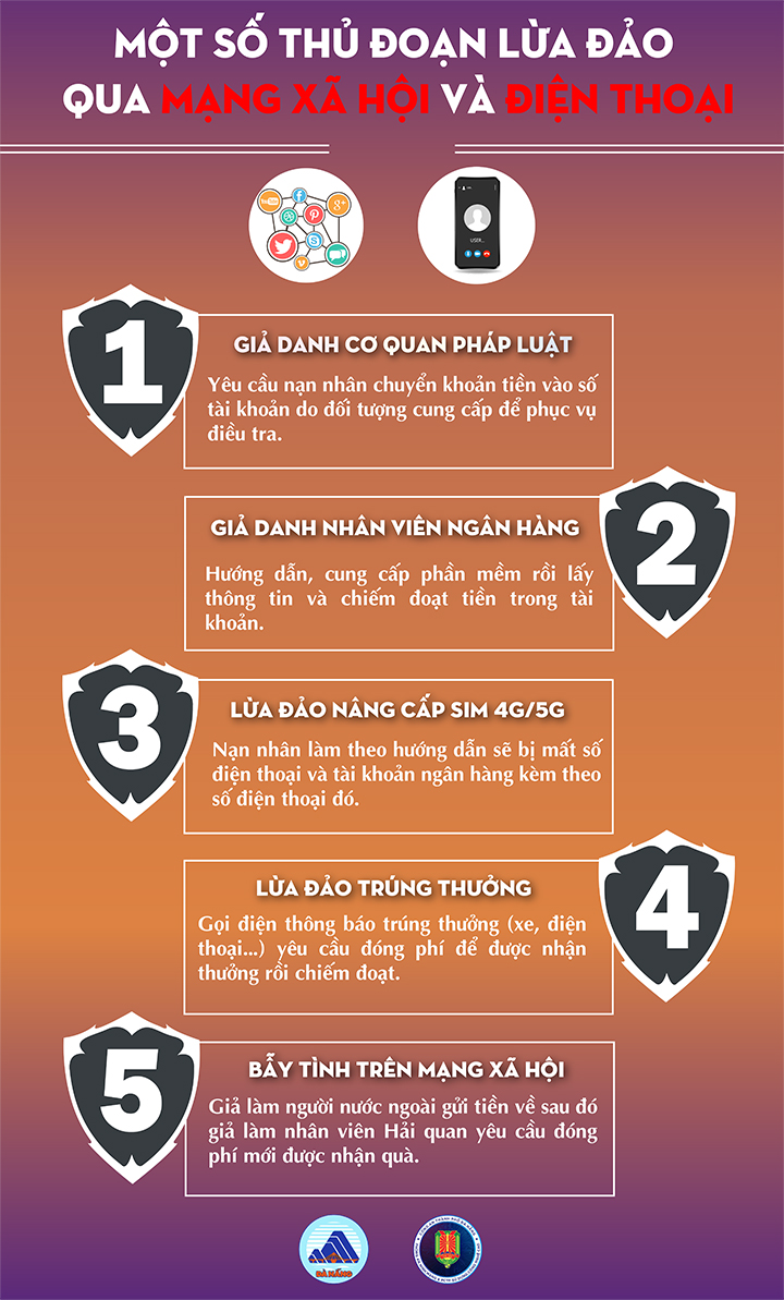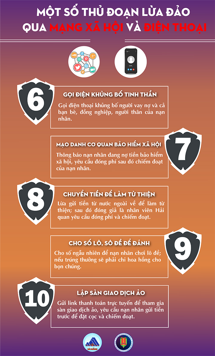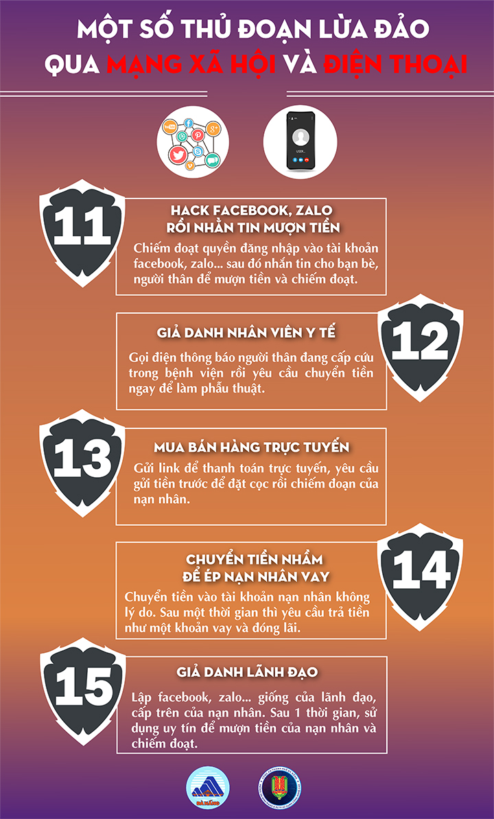 Infographic một số thủ đoạn lừa đảo qua mạng xã hội và điện thoại