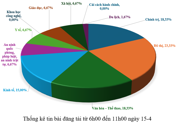 Từ 11h00 ngày 14-4 đến 6h00 ngày 15-4, có khoảng 199 tin, bài viết về thành phố Đà Nẵng.