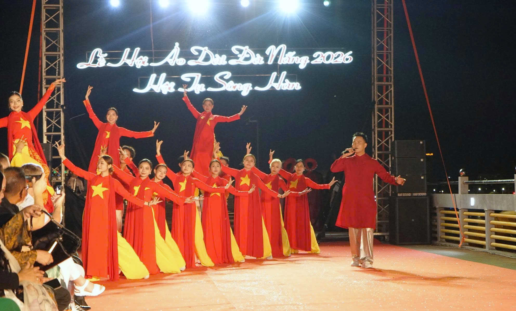 Tiết mục “Việt Nam – Tự hào bước tiếp tương lai” khép lại Lễ hội Áo dài Đà Nẵng 2026.