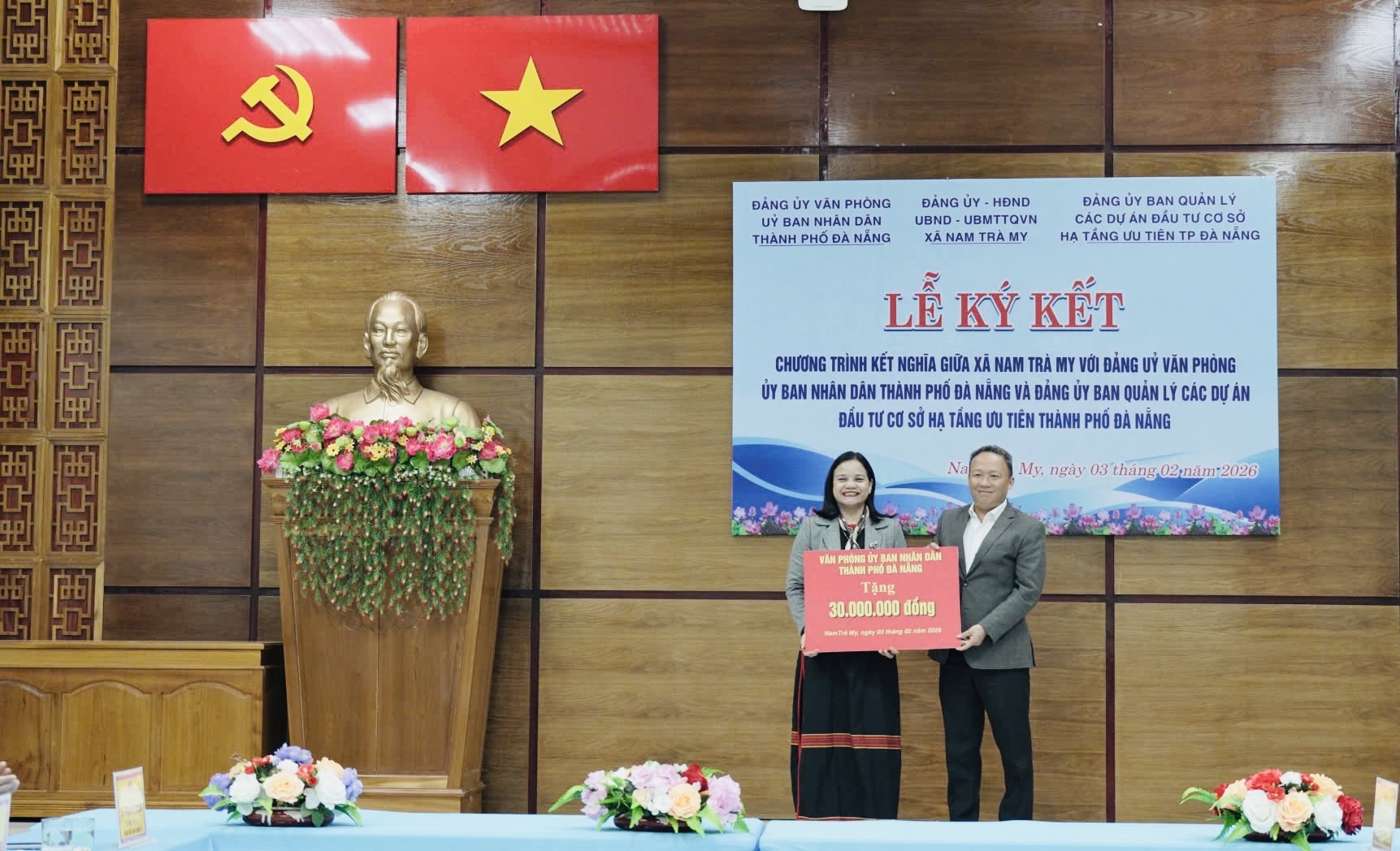 Sáng 03-02, Đảng uỷ Văn phòng UBND thành phố và Ban Quản lý các dự án đầu tư cơ sở hạ tầng ưu tiên thành phố tổ chức kết nghĩa với xã Nam Trà My.