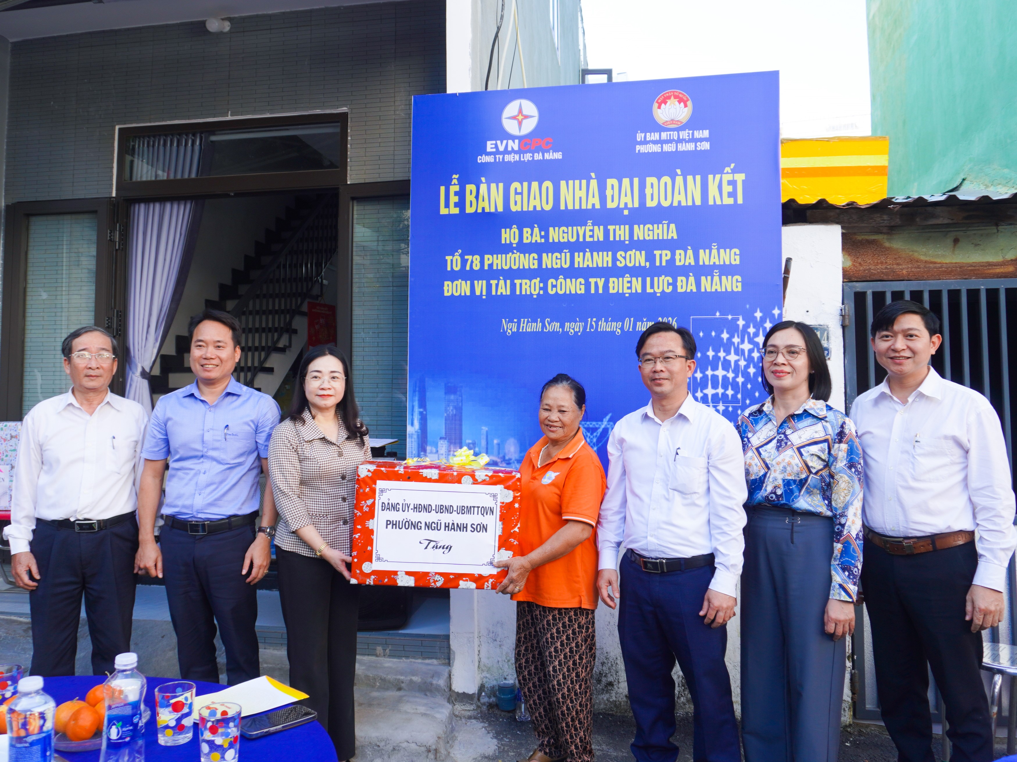 Chiều 15-01, Ủy ban Mặt trận Tổ quốc Việt Nam phường Ngũ Hành Sơn phối hợp cùng Công ty Điện lực Đà Nẵng tổ chức Lễ bàn giao nhà “Đại đoàn kết” cho gia đình bà Nguyễn Thị Nghĩa (Tổ 78, phường Ngũ Hành Sơn).