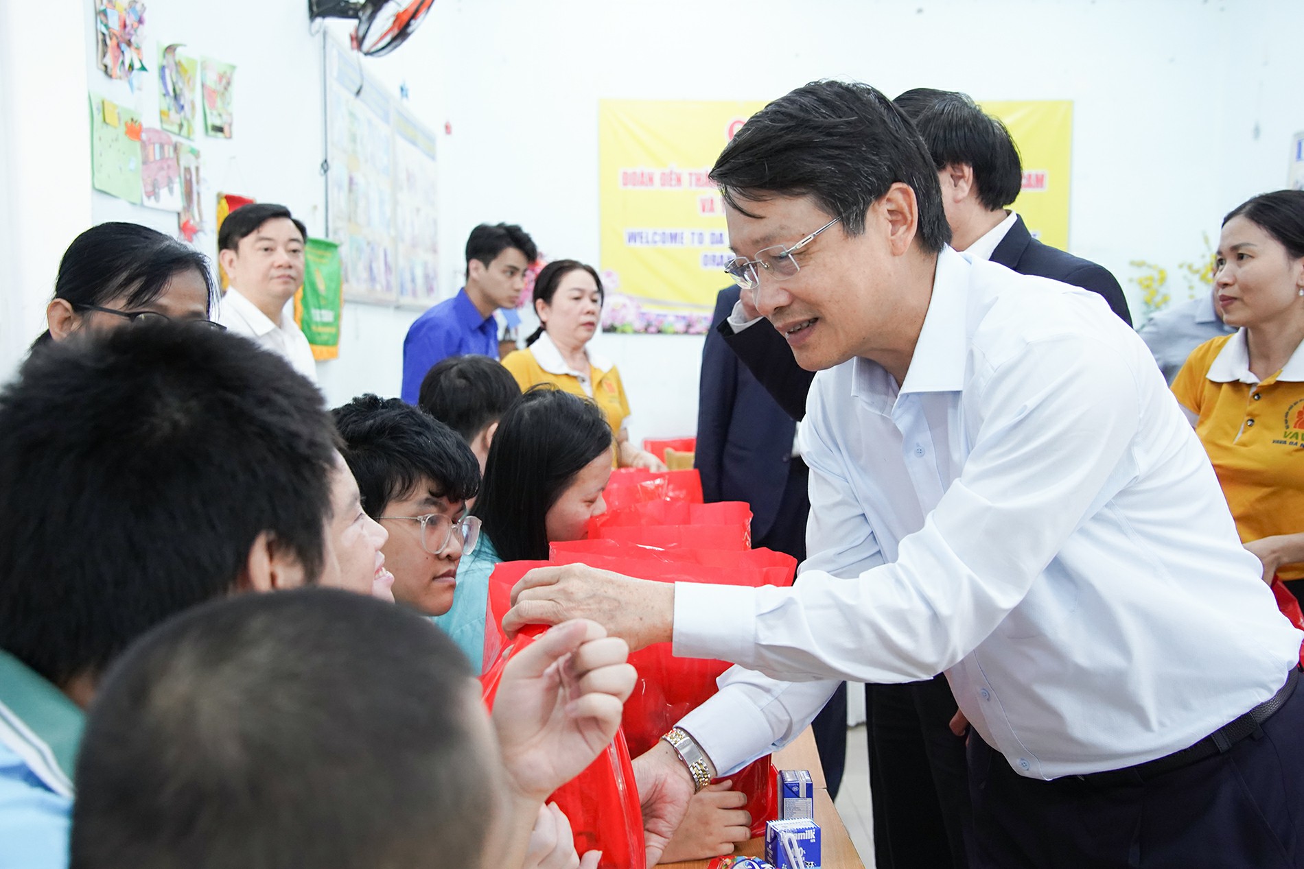 Phó Bí thư Thành ủy Ngô Xuân Thắng tặng quà Tết cho trẻ em Trung tâm Bảo trợ nạn nhân chất độc da cam và trẻ em nghèo bất hạnh thành phố