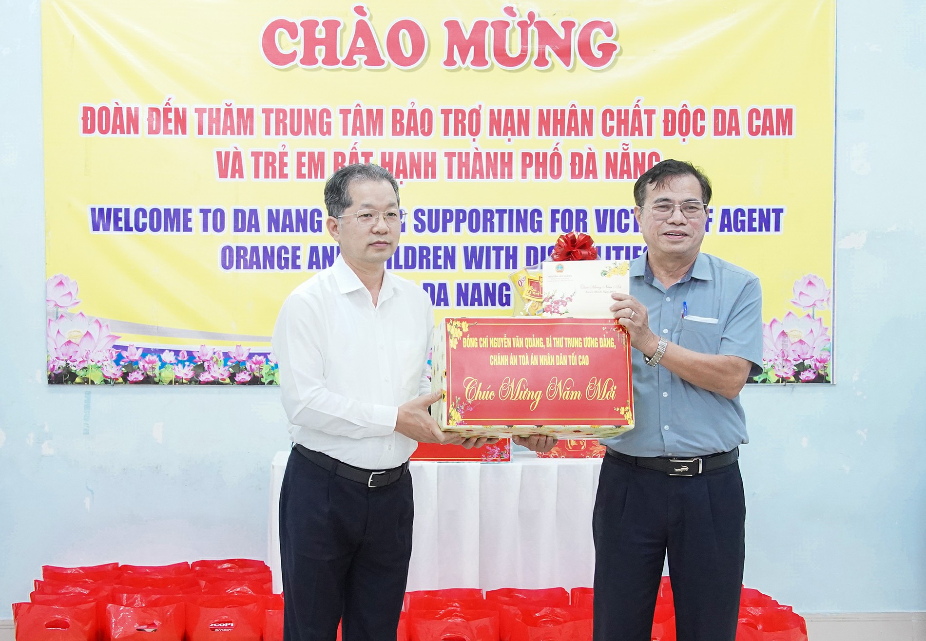 Đến thăm và chúc Tết Trung tâm Bảo trợ nạn nhân chất độc da cam và trẻ em nghèo bất hạnh thành phố, Chánh án TAND Tối cao Nguyễn Văn Quảng gửi lời chúc mừng năm mới tới toàn thể cán bộ, nhân viên và các đối tượng đang được chăm sóc, nuôi dưỡng tại Trung tâm.