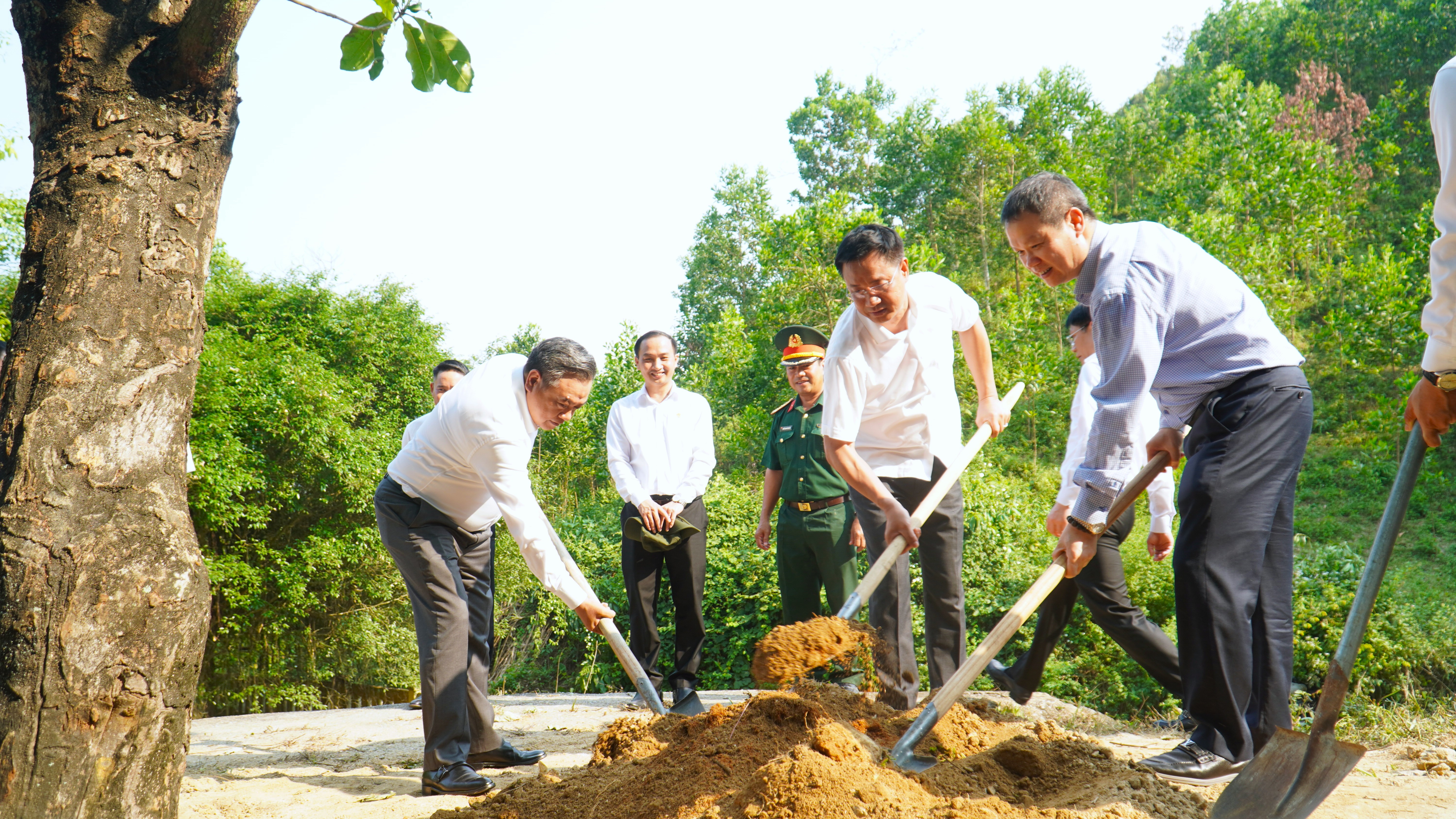 Tiếp đó, Ủy viên Bộ Chính trị, Bí thư Trung ương Đảng, Chủ nhiệm Ủy ban Kiểm tra Trung ương Trần Sỹ Thanh và đoàn công tác trồng cây lưu niệm trong khuôn viên Nhà bia Di tích Ban Kiểm tra Khu ủy Khu 5.