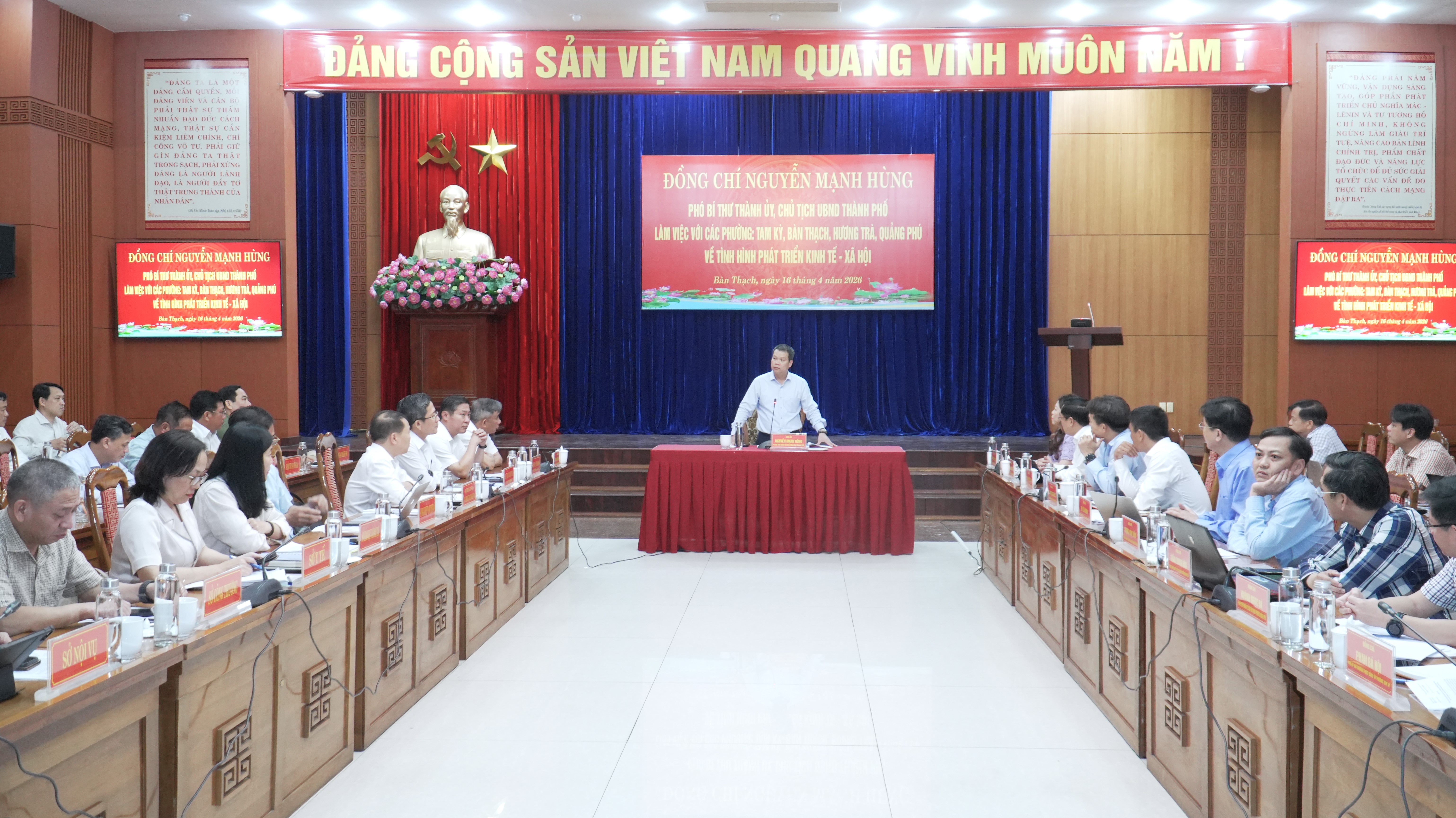 Chiều 16-4, Phó Bí thư Thành ủy, Chủ tịch UBND thành phố Nguyễn Mạnh Hùng chủ trì buổi làm việc với các phường Tam Kỳ, Bàn Thạch, Hương Trà, Quảng Phú về tình hình kinh tế-xã hội. Cùng dự có Phó Chủ tịch HĐND thành phố Trần Xuân Vinh, Phó Chủ tịch UBND thành phố Phan Thái Bình, Phó Chủ tịch UBND thành phố Trần Nam Hưng và lãnh đạo các sở, ban, ngành.