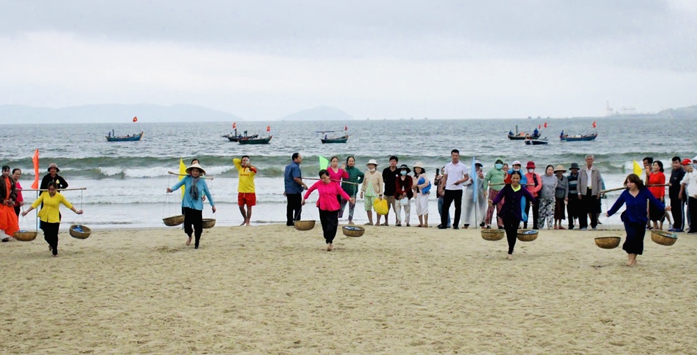 Bên cạnh đó, phần hội diễn ra sôi nổi với nhiều hoạt động văn hóa, thể thao mang đậm bản sắc cư dân vùng biển: ngoáy thúng, kéo lưới, gánh cá, biểu diễn thuyền buồm, thuyền SUP, không gian ẩm thực “Mâm hương vị biển”, hát tuồng, hô hát bài chòi, hội thi vẽ tranh và bóng chuyền bãi biển, thu hút đông đảo người dân và du khách tham gia.