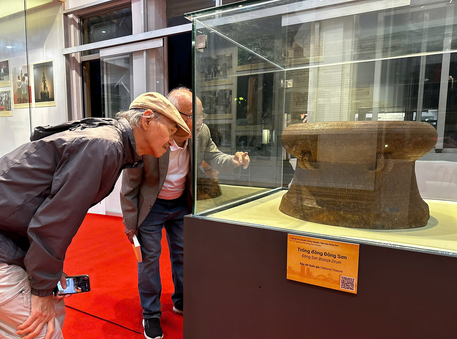 Trong số các bảo vật được giới thiệu có hai bảo vật văn hóa Đông Sơn, thuộc sưu tập Hoàng Long, gồm Trống đồng và Thạp đồng Đông Sơn, là minh chứng sinh động cho kỹ thuật đúc đồng và trình độ văn minh của người Việt cổ thế kỷ III đến thế kỷ I trước công nguyên.