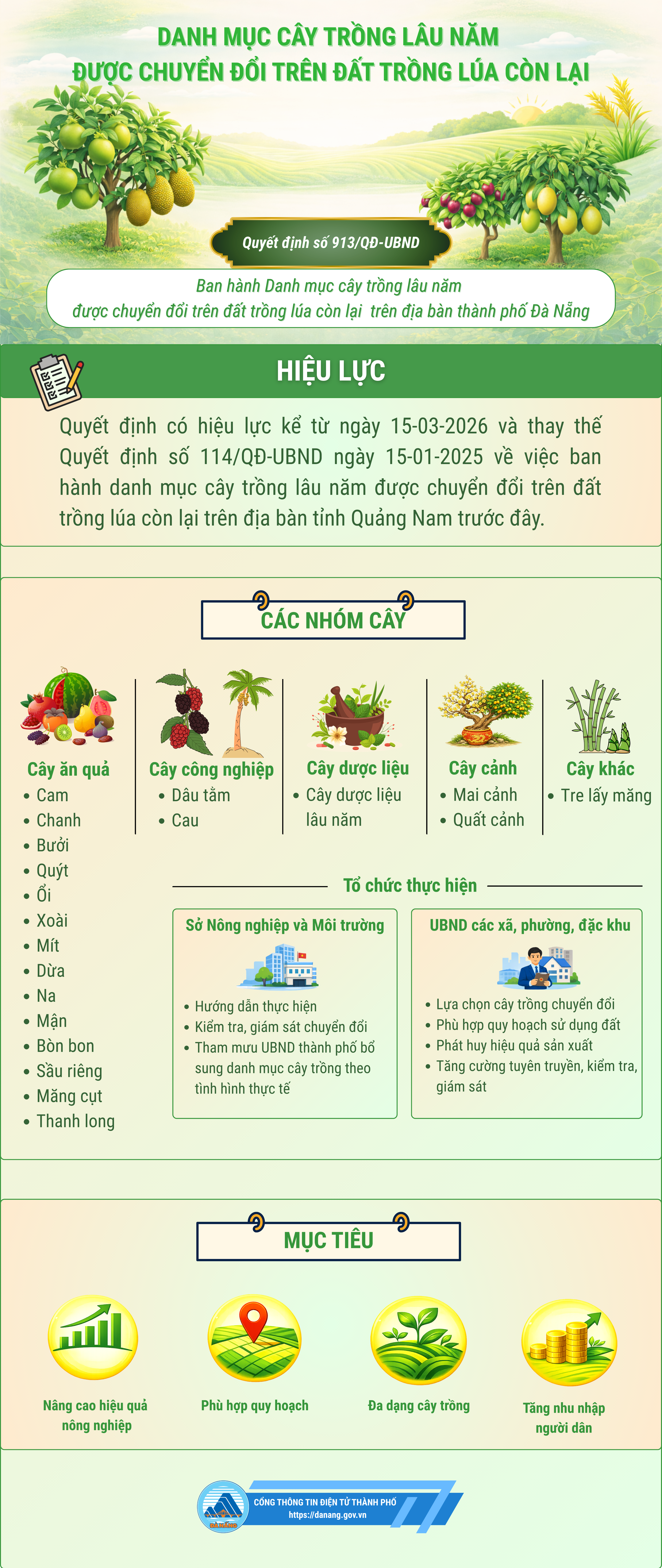 [Infographic] - Danh mục cây trồng lâu năm được chuyển đổi trên đất trồng lúa còn lại