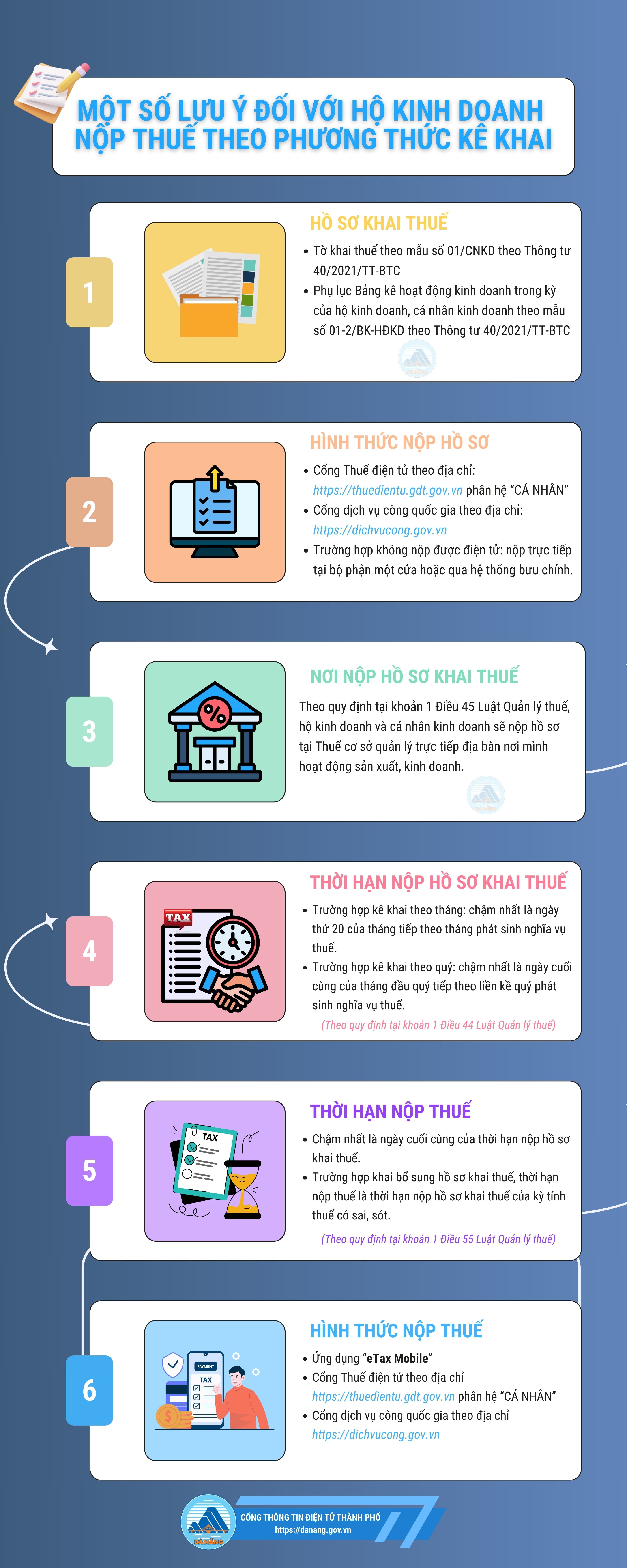 [Infographic] - Một số lưu ý đối với hộ kinh doanh nộp thuế theo phương pháp kê khai