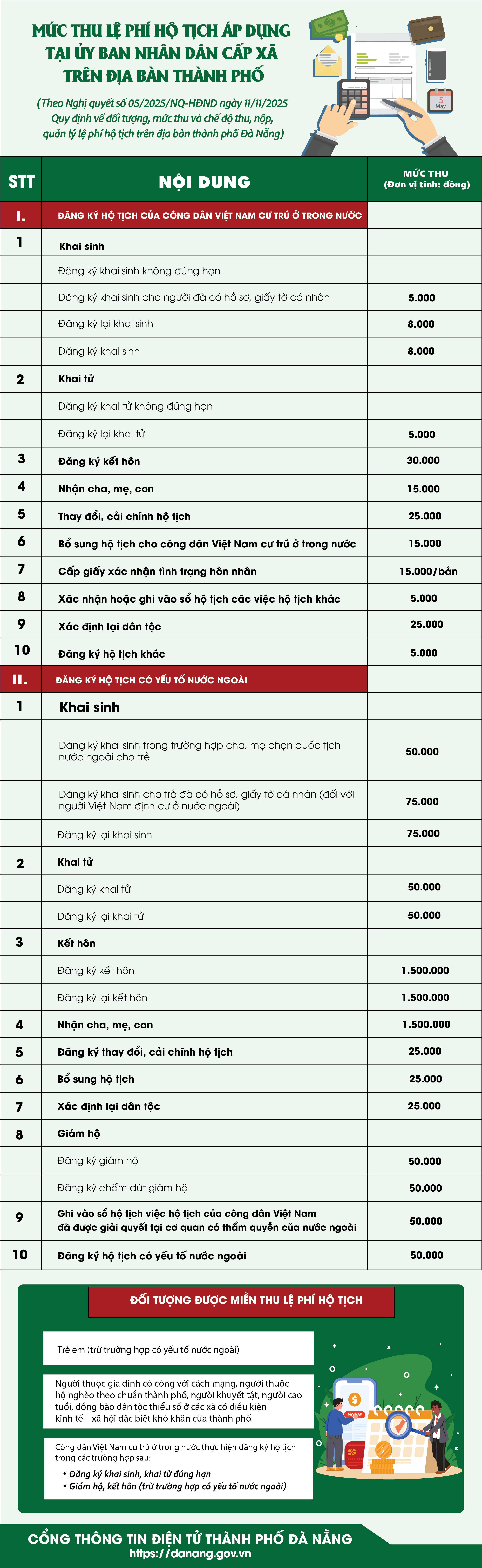 HĐND thành phố đã thông qua Nghị quyết số 05 ngày 11-11-2025 quy định về đối tượng, mức thu và chế độ thu, nộp quản lý lệ phí hộ tịch trên địa bàn thành phố Đà Nẵng.