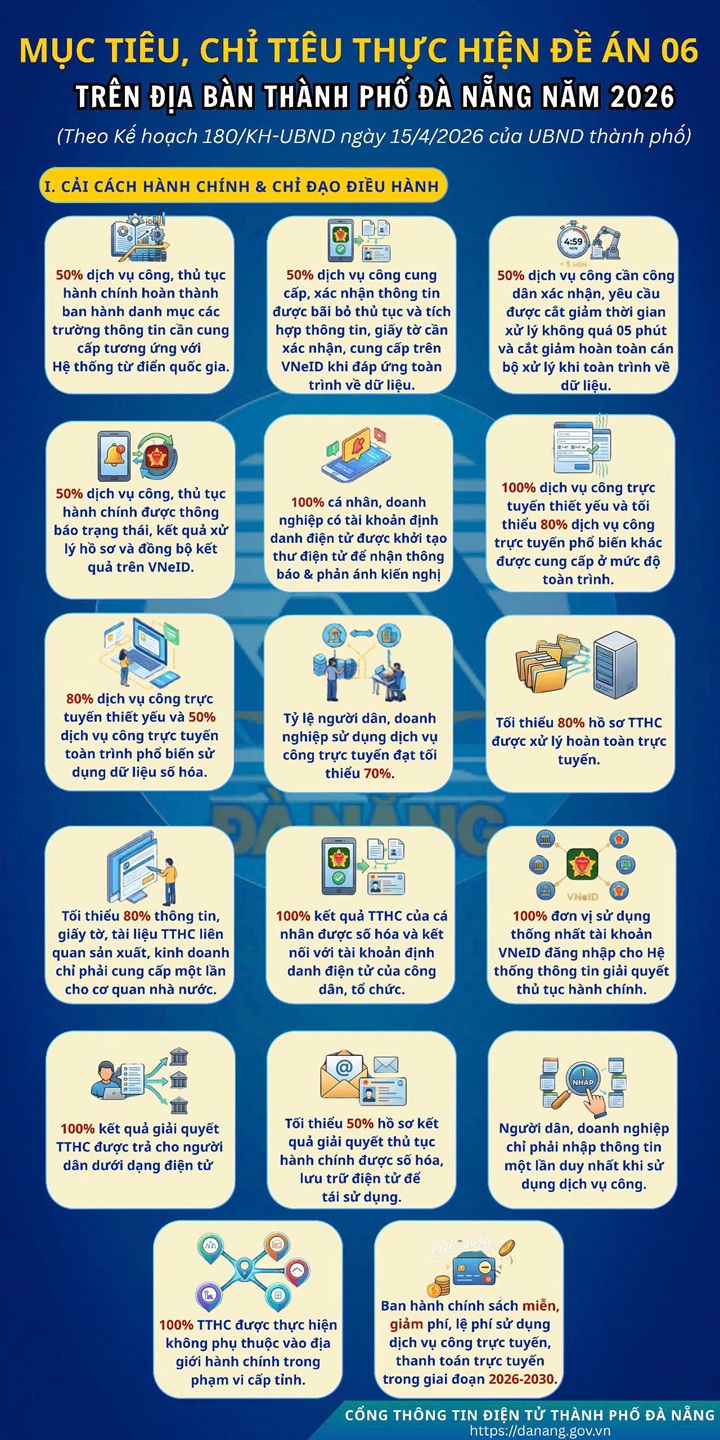 [Infographic] - Mục tiêu, chỉ tiêu thực hiện Đề án 06 trên địa bàn thành phố Đà Nẵng năm 2026