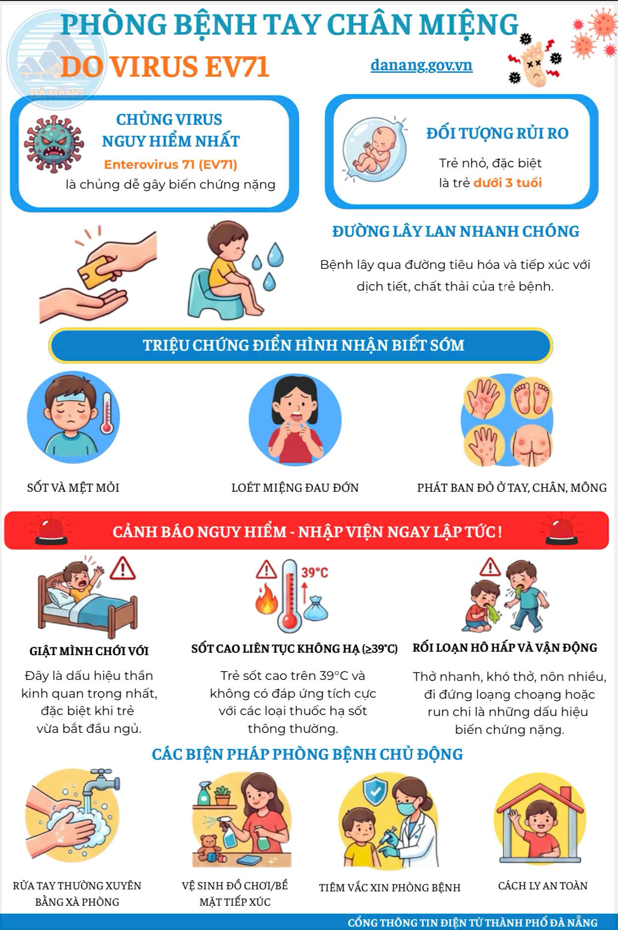 Bệnh tay chân miệng do virus EV71 là chủng nguy hiểm, có thể gây biến chứng nặng và đe dọa tính mạng trẻ nhỏ, đặc biệt dưới 3 tuổi. Nhận biết sớm triệu chứng và chủ động phòng bệnh là giải pháp quan trọng để bảo vệ sức khỏe cho trẻ.