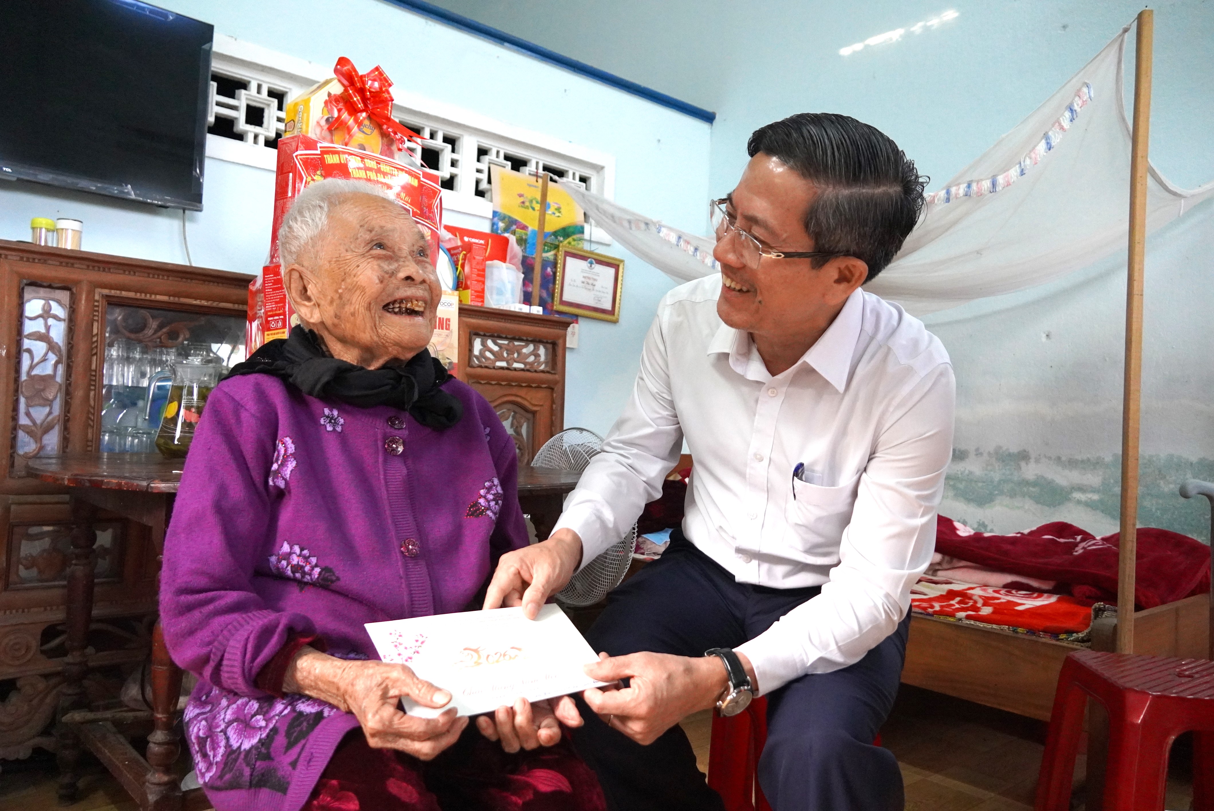 Phó Chủ tịch UBND thành phố Phan Thái Bình thăm, chúc Tết gia đình nguyên lãnh đạo thành phố