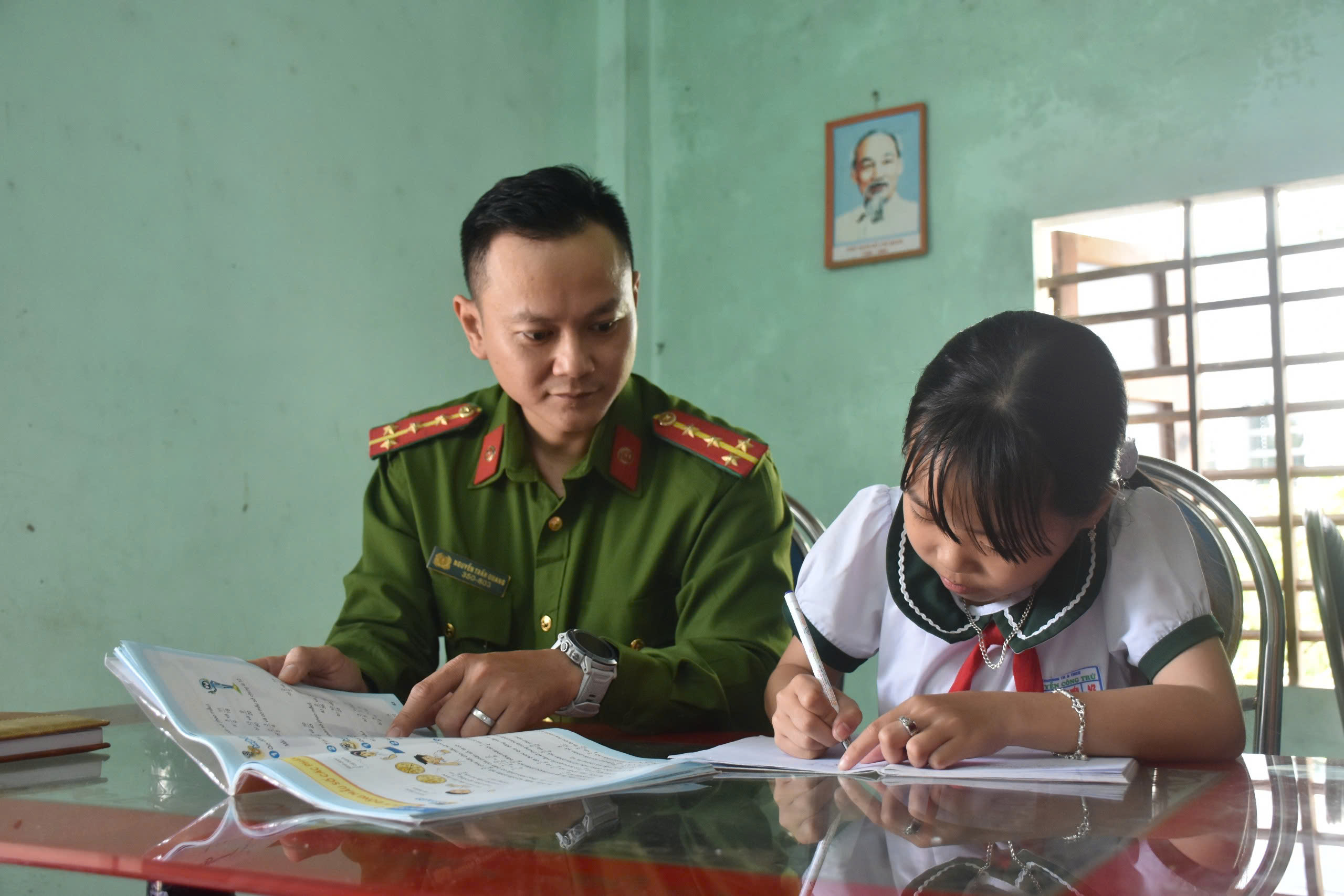 Không chỉ hỗ trợ sách vở, quần áo, chi phí học tập, các đoàn viên, thanh niên Công an xã còn thường xuyên quan tâm, động viên, kèm cặp việc học, giúp em có thêm điểm tựa tinh thần để tiếp tục đến trường. Những buổi trò chuyện giản dị, những lần hướng dẫn bài vở đã dần xóa đi khoảng cách, vun đắp nên tình cảm gắn bó như người thân trong gia đình.