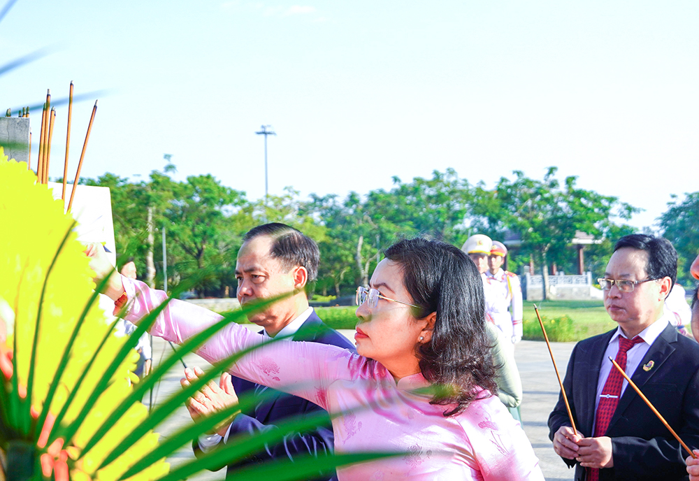 Tại Nghĩa trang Liệt sĩ và Tượng đài Mẹ Việt Nam anh hùng, đoàn đại biểu thành kính dâng hoa, dâng hương và dành phút mặc niệm tri ân tinh thần chiến đấu dũng cảm, sự hy sinh to lớn của các anh hùng liệt sĩ trong sự nghiệp đấu tranh giải phóng dân tộc, bảo vệ Tổ quốc.