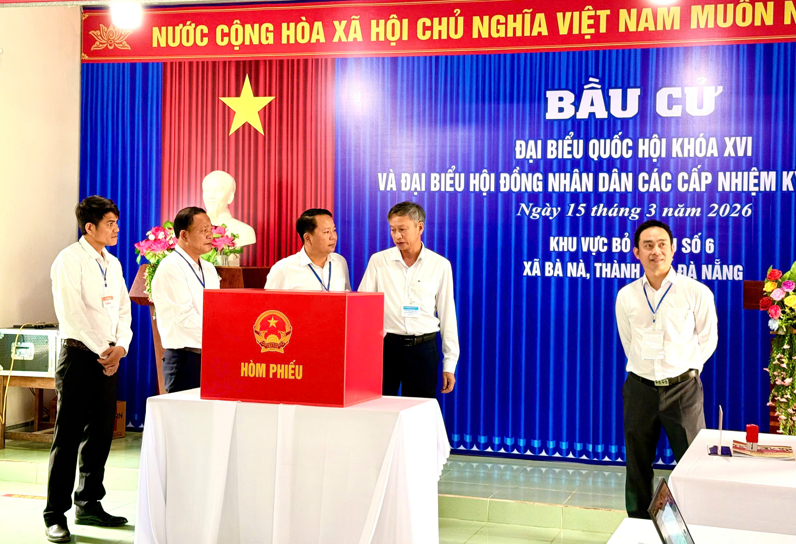 Tiếp đó, đoàn kiểm tra tại xã Bà Nà gồm khu vực bỏ phiếu số 7 (thôn Phước Thuận), khu vực bỏ phiếu số 6 (thôn Hòa Khương Đông) và khu vực bỏ phiếu số 15 (thôn Hòa Trung). Các khu vực bỏ phiếu được chuẩn bị chu đáo, bảo đảm đầy đủ điều kiện phục vụ cử tri; cử tri đến bỏ phiếu với tâm thế hồ hởi, kỳ vọng lựa chọn được những đại biểu tiêu biểu, xứng đáng đại diện cho ý chí, nguyện vọng của Nhân dân.