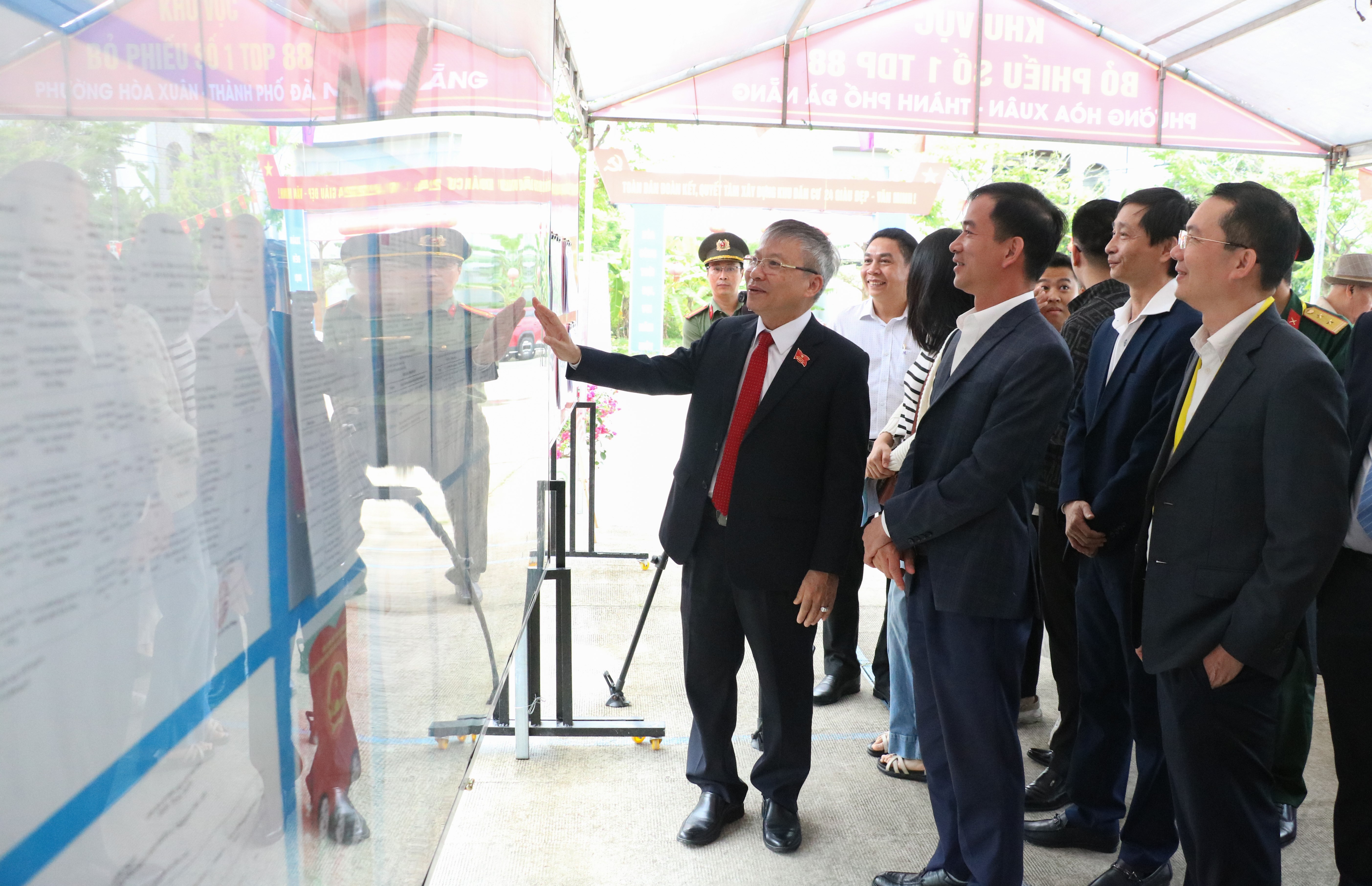 * Phó Chủ nhiệm Thường trực Ủy ban Kiểm tra Thành ủy Nguyễn Đức Tiến kiểm tra thực tế công tác bầu cử tại các khu vực bỏ phiếu tại phường Thanh Khê và An Khê.