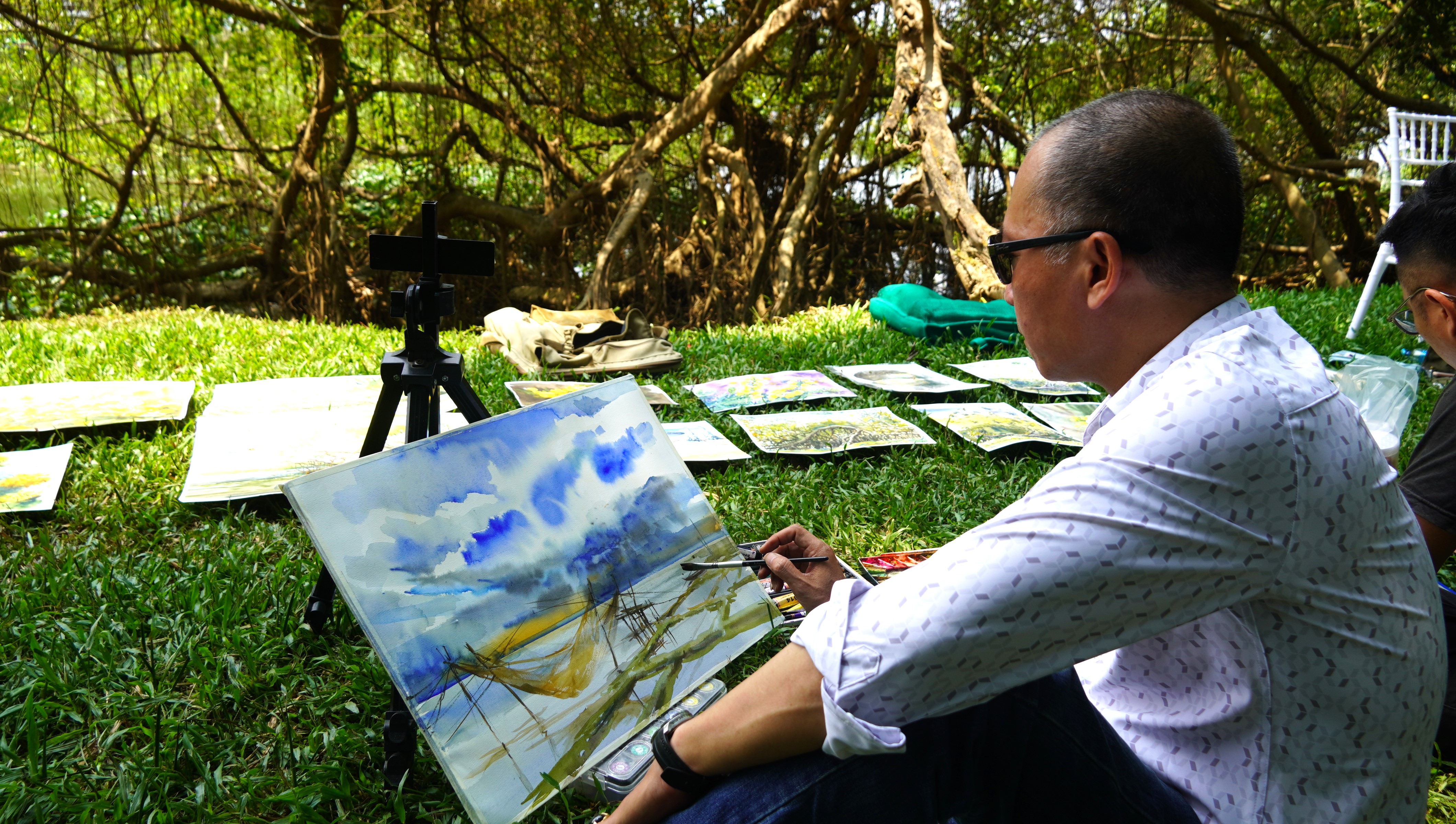 Lần thứ ba trở lại Lễ hội, kiến trúc sư Phạm Thanh Sơn (nhóm Ký họa đô thị Hà Nội) tiếp tục tham gia hoạt động trưng bày mỹ thuật và ký họa trực tiếp. “Vẫn nguyên vẹn cảm xúc như lần đầu tới mảnh đất Hương Trà với dòng sông Tam Kỳ thơ mộng và hàng Sưa cổ kính trăm năm phủ màu vàng rực, những khung cảnh ấy đã tạo nên chất liệu phong phú để những người yêu thích hội họa như chúng tôi có thêm không gian sáng tạo. Hy vọng rằng, Hương Trà vẫn luôn giữ được những cảnh sắc hiếm có này”- anh Sơn chia sẻ.