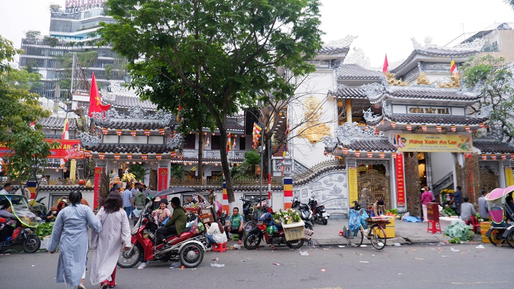 Tại phường Hải Châu, từ sáng sớm mùng 1, người dân nô nức đi lễ chùa, hái lộc đầu năm với mong ước một năm mới thuận lợi.