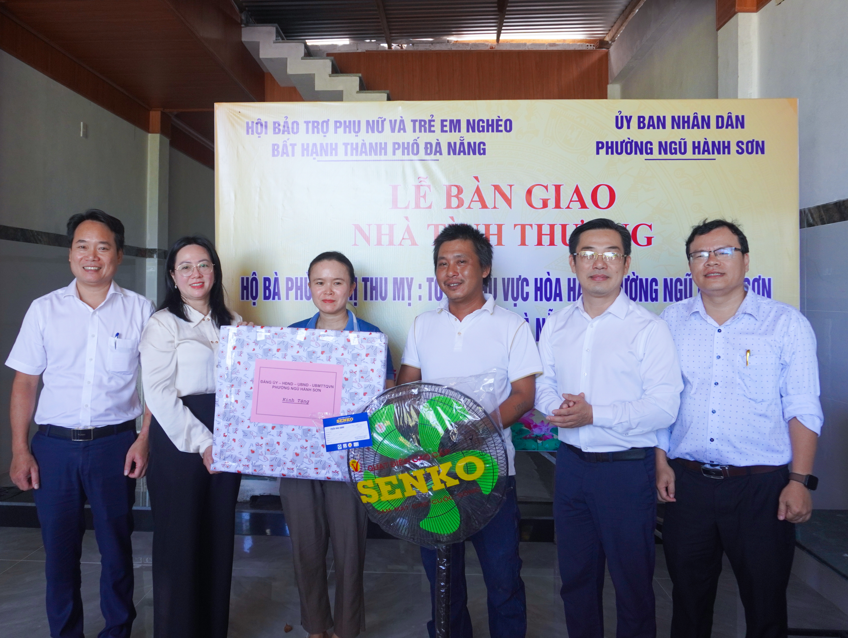Lãnh đạo phường Ngũ Hành Sơn tặng quà cho hộ khó khăn tại Lễ bàn giao nhà tình thương