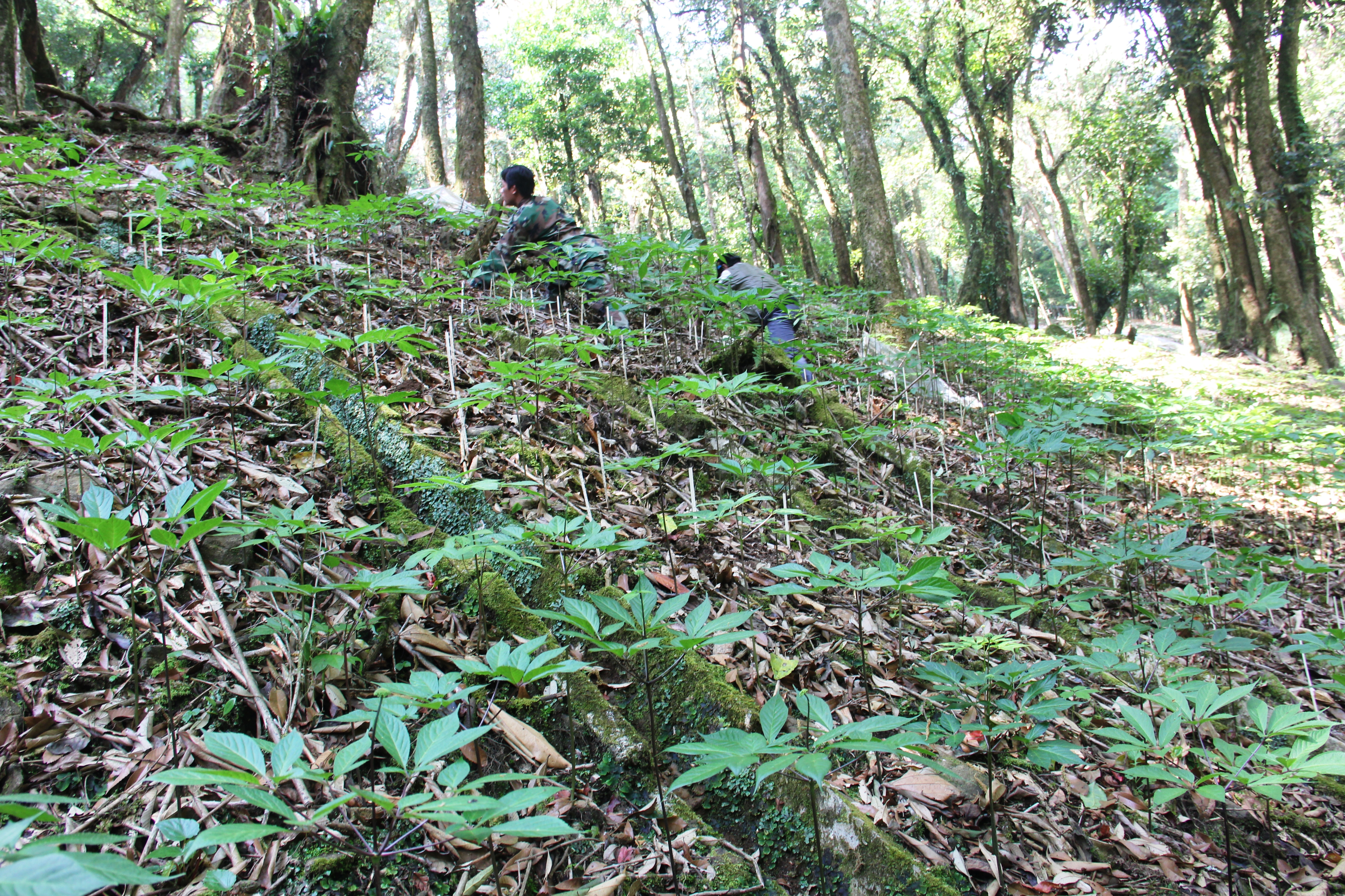 Sâm Ngọc Linh được trồng dưới tán rừng nguyên sinh ở xã Trà Linh