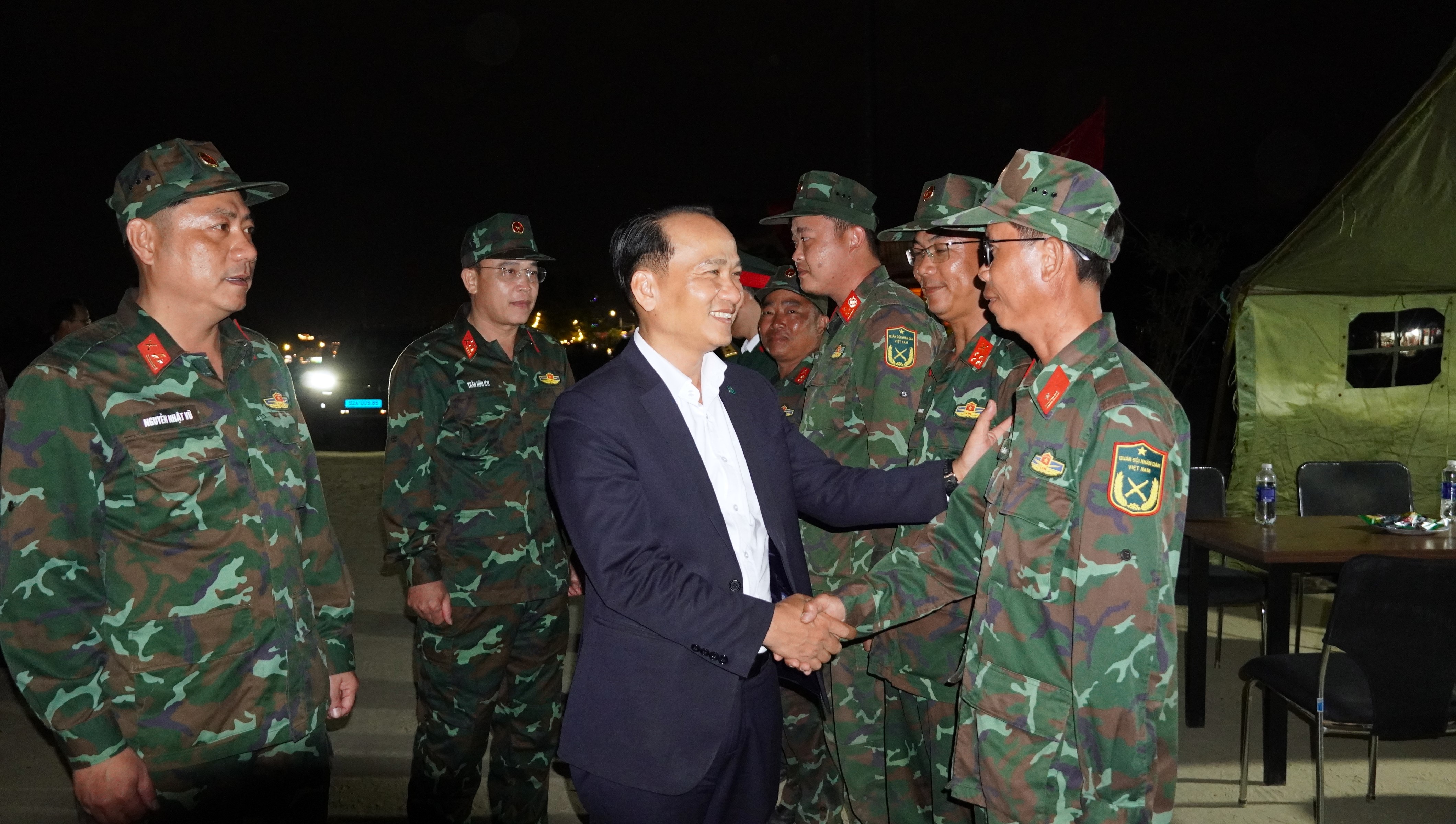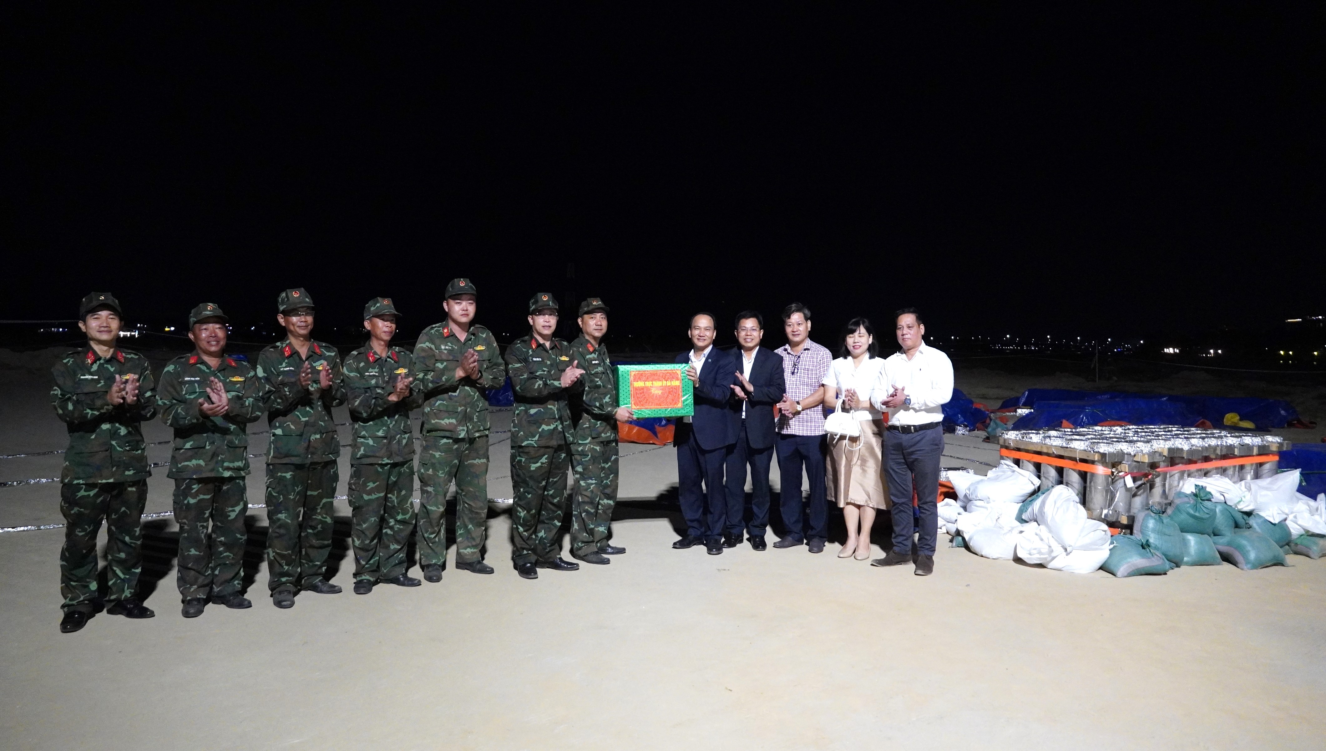 Đến thăm, động viên lực lượng làm nhiệm vụ tại điểm bắn pháo hoa số 4 (khu du lịch Cồn Bắp, thôn Xuyên Trung, phường Hội An), Phó Bí thư Thường trực Thành ủy Nguyễn Đình Vĩnh thăm hỏi tình hình triển khai nhiệm vụ, công tác phối hợp giữa các lực lượng.