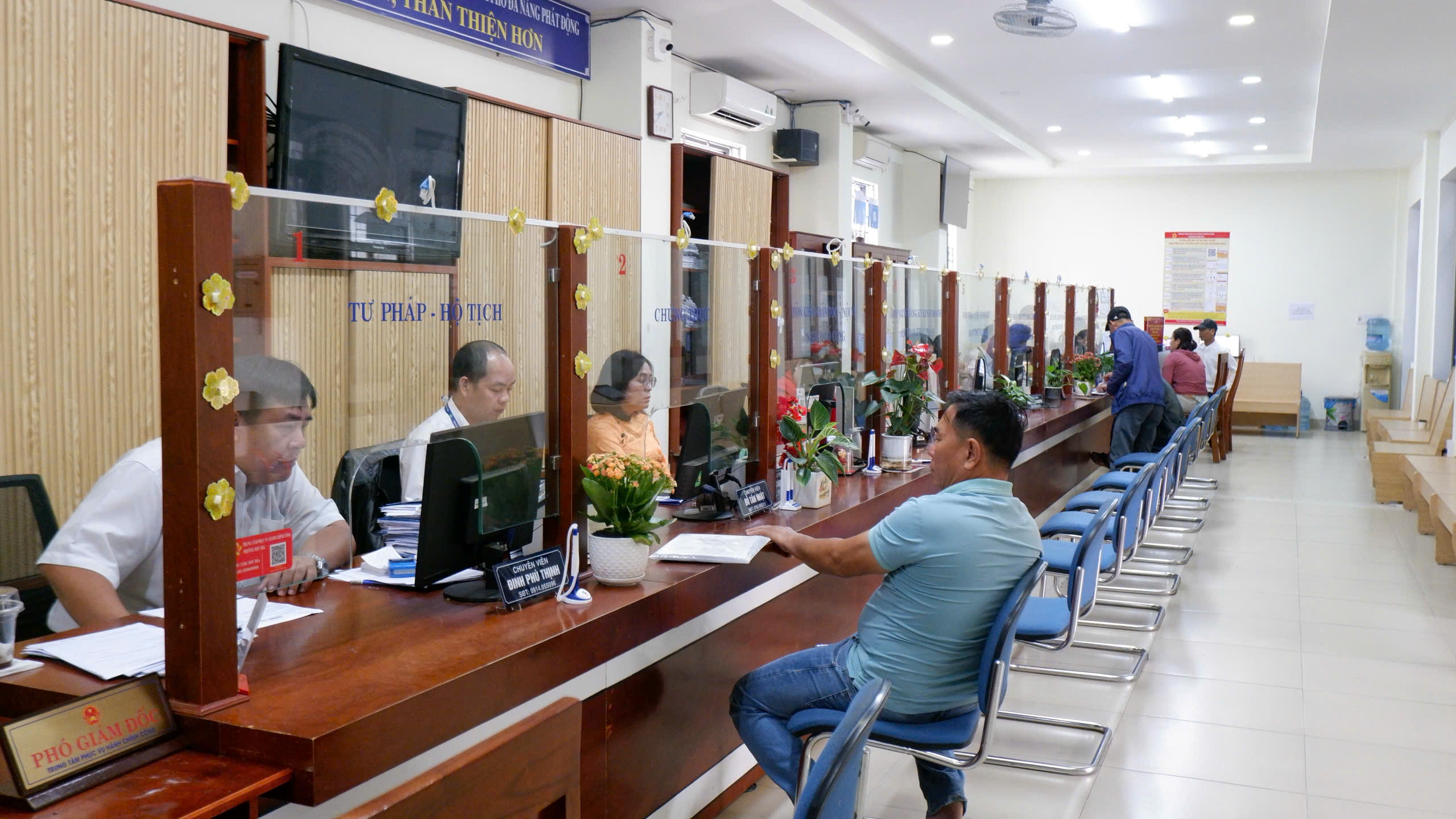 Các quầy tiếp nhận và trả kết quả được bố trí khoa học. Hệ thống lấy số thứ tự vận hành thông suốt, tạo thuận lợi cho người dân đến liên hệ công tác. Hồ sơ thuộc các lĩnh vực hộ tịch, chứng thực, đăng ký kinh doanh, đất đai được tiếp nhận, xử lý đúng quy trình, không để xảy ra tình trạng ùn ứ. Người dân đến làm thủ tục hành chính bày tỏ sự phấn khởi, ghi nhận tinh thần trách nhiệm, tận tình và thái độ phục vụ của đội ngũ công chức phường.