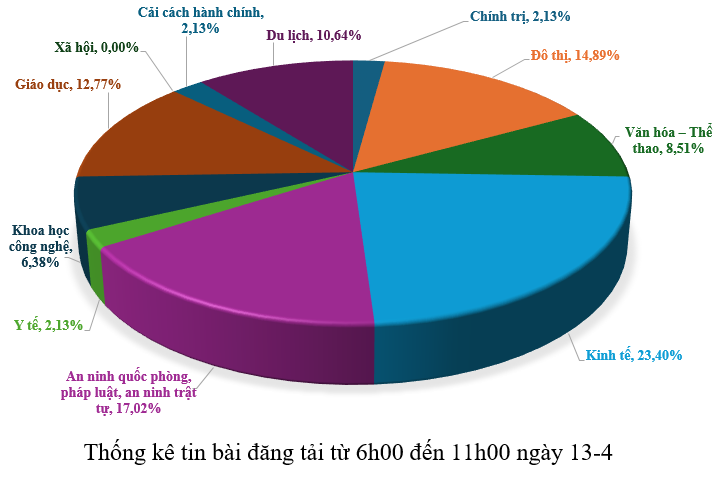 Từ 6h00 đến 11h00 ngày 13-4, có khoảng 47 tin, bài viết về thành phố Đà Nẵng.