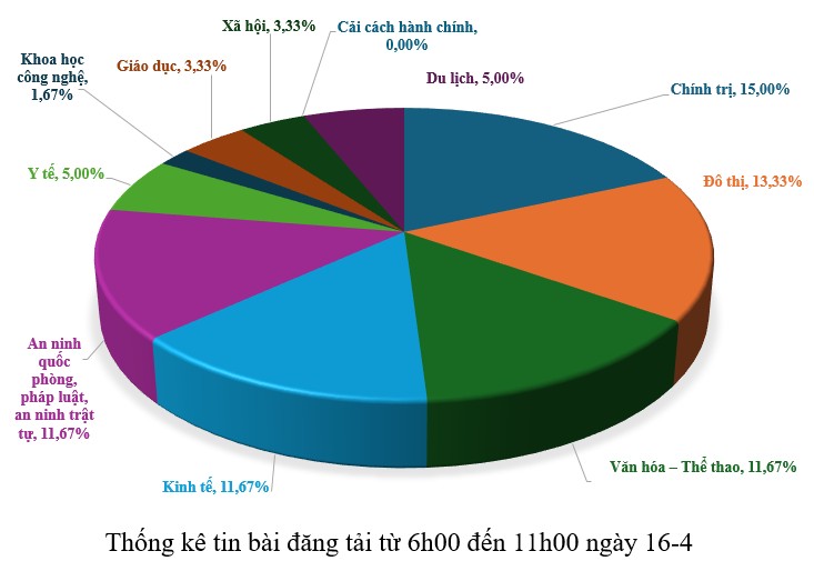 Từ 6h00 đến 11h00 ngày 16-4, có khoảng 49 tin, bài viết về thành phố Đà Nẵng.