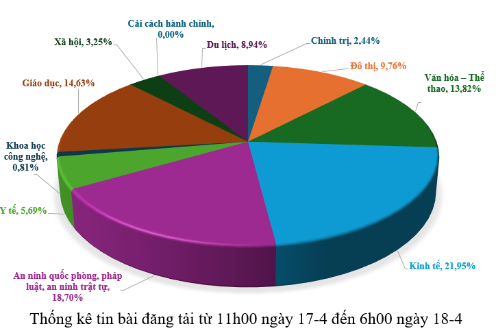 Từ 11h00 ngày 17-4 đến 6h00 ngày 18-4, có khoảng 123 tin, bài viết về thành phố Đà Nẵng.