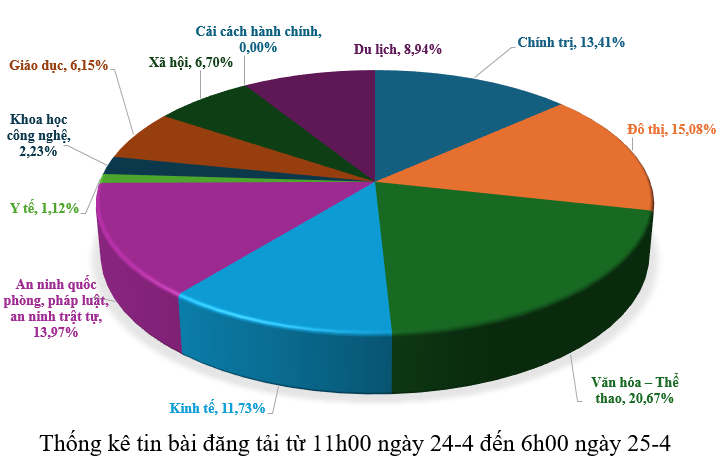 Từ 11h00 ngày 24-4 đến 6h00 ngày 25-4, có khoảng 179 tin, bài viết về thành phố Đà Nẵng.