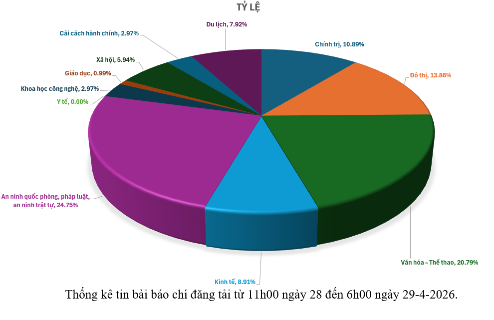 Từ 11h00 ngày 28 đến 6h00 ngày 29-4, có khoảng 101 tin, bài viết về thành phố Đà Nẵng.