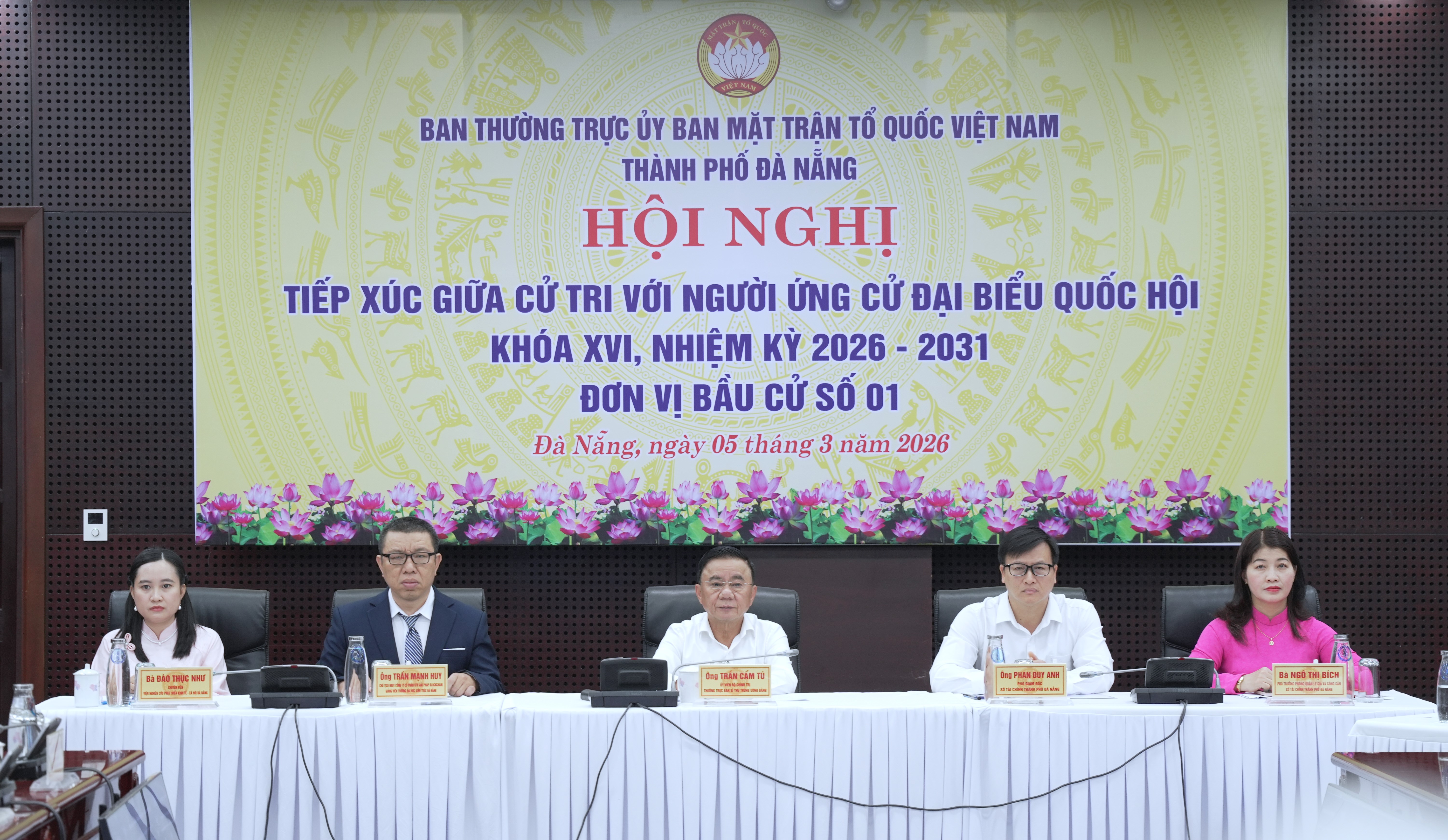 Ứng cử viên đại biểu Quốc hội khoá XVI, nhiệm kỳ 2026 – 2031 thuộc đơn vị bầu cử số 01 gồm: Ủy viên Bộ Chính trị, Thường trực Ban Bí thư Trần Cẩm Tú; Phó Giám đốc Sở Tài chính thành phố Phan Duy Anh; Chủ tịch Hội đồng quản trị Công ty Cổ phần HTV Giải pháp Blockchain, Giảng viên Trường Đại học Kiến trúc Đà Nẵng Trần Mạnh Huy; Phó Trưởng Phòng Quản lý giá và công sản, Sở Tài chính thành phố Ngô Thị Bích; Chuyên viên Viện Nghiên cứu Phát triển Kinh tế - xã hội Đà Nẵng Đào Thục Như.