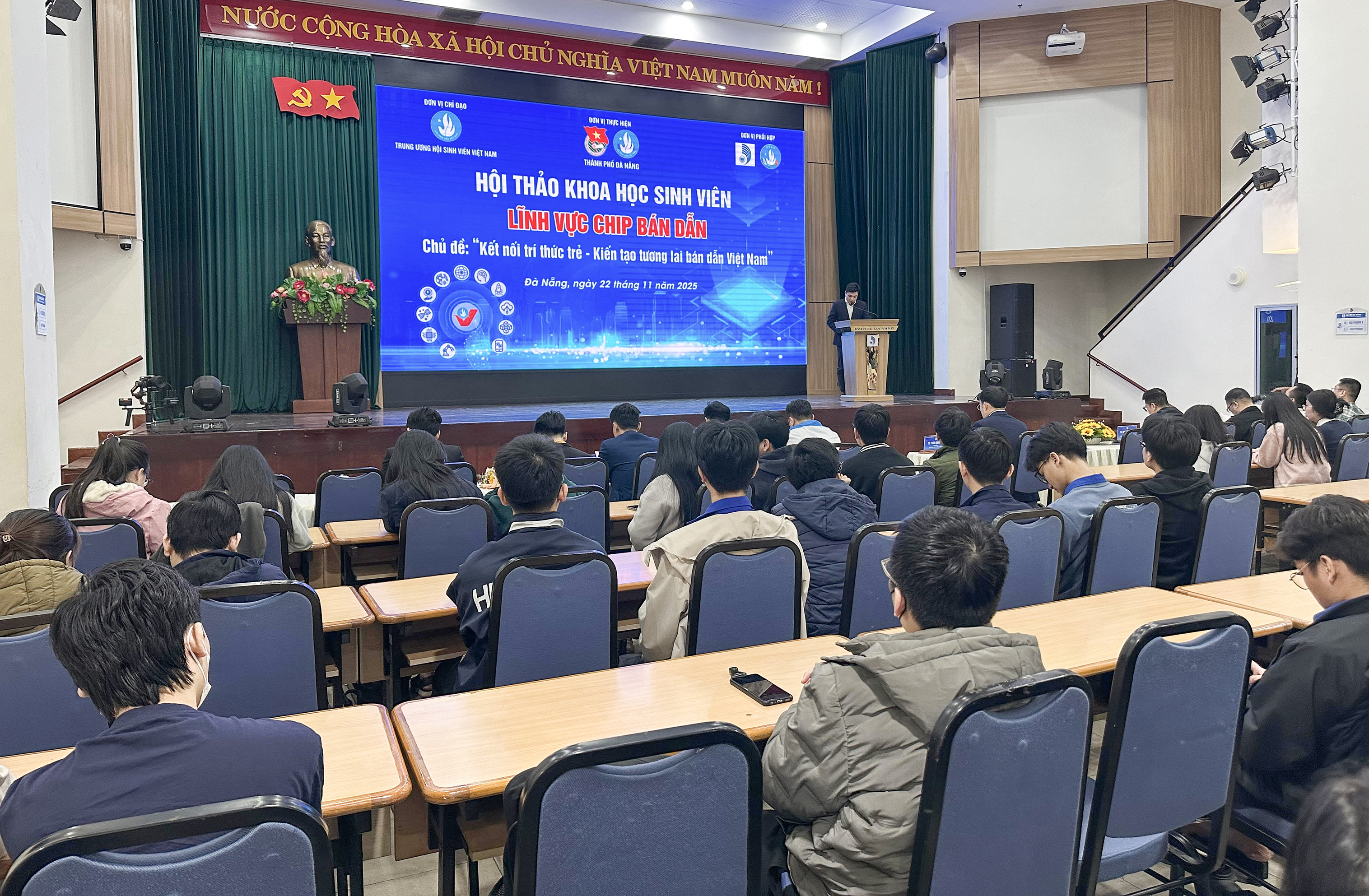 Chiều 22-11, Trung ương Hội Sinh viên Việt Nam phối hợp Đại học Đà Nẵng tổ chức hội thảo khoa học sinh viên lĩnh vực công nghệ “Kết nối tri thức trẻ - Kiến tạo tương lai bán dẫn Việt Nam” cho sinh viên toàn quốc. Hội thảo được kết trực tuyến qua các nền tảng của Trung ương Đoàn, Trung ương Hội Sinh viên Việt Nam, Hội Sinh viên thành phố Đà Nẵng.