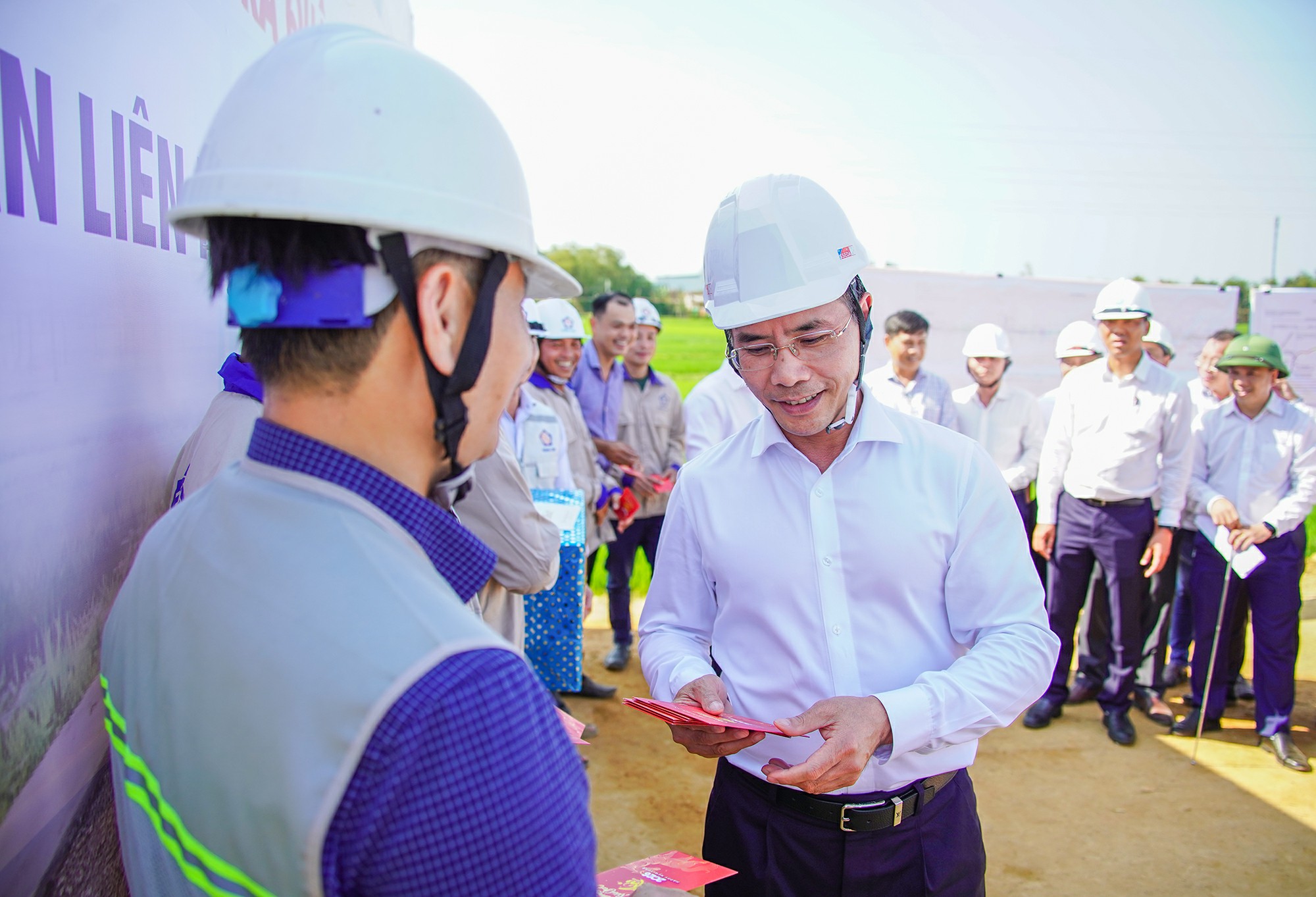 Đầu năm mới Bính Ngọ, Chủ tịch UBND thành phố thăm hỏi các đơn vị thi công trên công trường, lì xì đầu năm và động viên tập thể người lao động tiếp tục phát huy tinh thần trách nhiệm, bảo đảm an toàn, chất lượng và tiến độ triển khai dự án.
