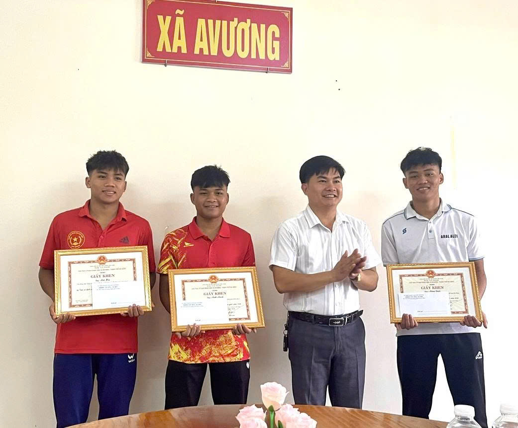 Trước đó, UBND xã Avương tổ chức gặp mặt và khen thưởng cho 06 cá nhân có thành tích xuất sắc, gồm 02 giáo viên và 04 học sinh, nhằm ghi nhận và động viên các cá nhân tiêu biểu trong quá trình tham gia Giải bóng đá nhi đồng thành phố Đà Nẵng năm 2026.