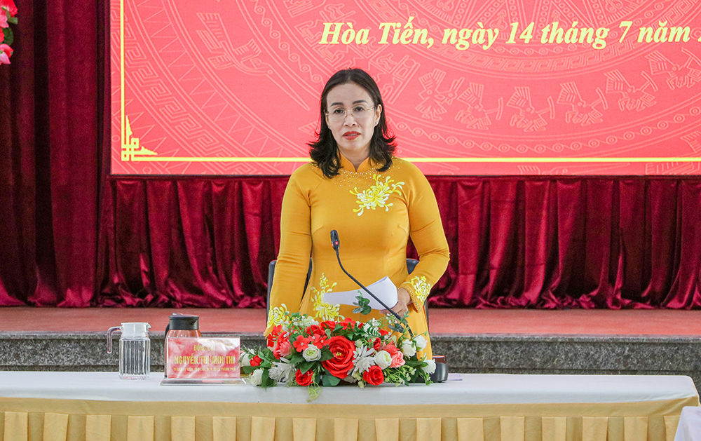 Phát biểu tại buổi làm việc, Phó Chủ tịch UBND thành phố Nguyễn Thị Anh Thi ghi nhận nỗ lực của xã Hòa Tiến trong thời gian đầu thực hiện chính quyền địa phương 2 cấp và mong muốn xã tiếp tục phát truyền thống đoàn kết, thống nhất, đồng tâm hiệp lực, vượt qua khó khăn, hoàn thành xuất sắc nhiệm vụ năm 2025.
